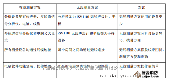 無(wú)線測(cè)量方案,用 1 臺(tái) iSV1101 無(wú)線聲級(jí)計(jì)和 1 個(gè)平板代替多通道信號(hào)分析儀和電腦,同時(shí)標(biāo)準(zhǔn)撞擊器也是無(wú)線的,它們通過(guò) WIFI 連接,房間之間無(wú)需連線,更適合某些不容易布線的場(chǎng)所,提高測(cè)試效率。有線建筑聲學(xué)測(cè)量系統(tǒng)與無(wú)線建筑聲學(xué)測(cè)量系統(tǒng)方案對(duì)比: