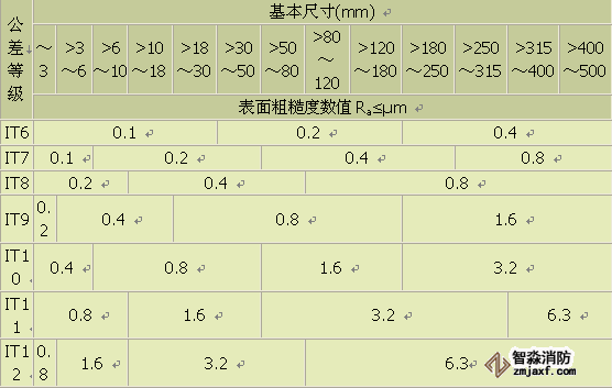 表1 公差等級與表面粗糙度值(用于精密機(jī)械)