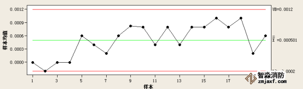 在上6、7圖中可看出,控制圖中的曲線在控制范圍內(nèi),依據(jù)控制圖判斷準(zhǔn)則所評(píng)測(cè)量機(jī)的測(cè)量是穩(wěn)定的。