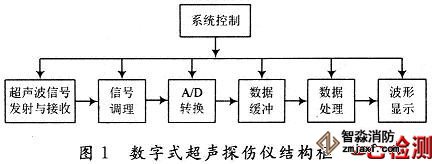 數(shù)字式超聲探傷儀結(jié)構(gòu)框圖如圖1所示。