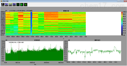 2、用于故障特征點分析診斷用,橫坐標為時間,縱坐標頻率,分貝大小用顏色表示;