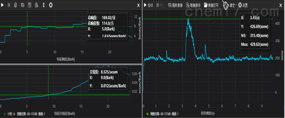 簡單的定量測量僅給出產品的噪聲、振動總值;考慮到聲音的頻率分布,越來越多的標準選擇加入1/3 OCT頻譜定量測量;引入心理聲學的參考,加入聲音和人的聽覺感受之間的關系,聲品質測量成為聲學度量的趨勢;聲品質指標有響度、尖銳度、粗糙度、波動度、調制度、音噪比及顯著率等。