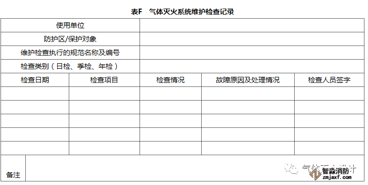 應按檢查類別規(guī)定對氣體滅火系統(tǒng)進行檢查,并按本規(guī)范表F做好檢查記錄。檢查中發(fā)現的問題應及時處理。
