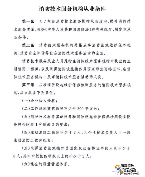 消防技術(shù)服務(wù)機(jī)構(gòu)從業(yè)條件