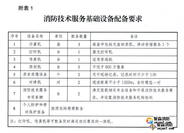 消防技術(shù)服務(wù)基礎(chǔ)設(shè)備配備要求