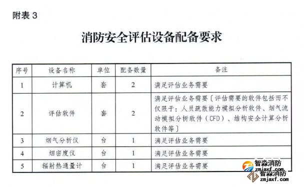 (三)消防技術(shù)服務(wù)基礎(chǔ)設(shè)備和消防安全評(píng)估設(shè)備配備符合附表1和附表3的要求;