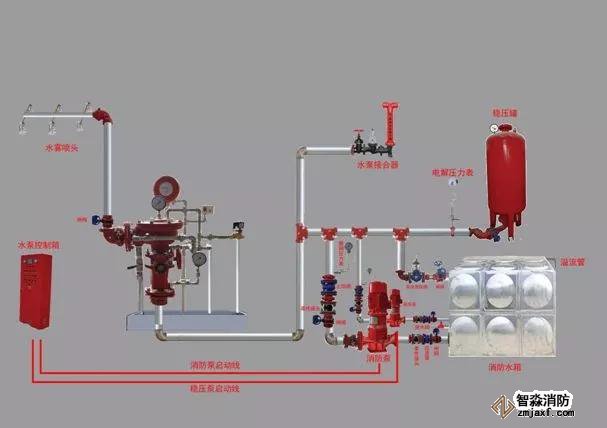 3、系統(tǒng)綜合性功能試驗:根據(jù)原設(shè)計的不同要求,對消防水泵分別進(jìn)行自動、手動、遠(yuǎn)程和泵房內(nèi)就地啟動的試驗;消防水泵組的主泵與副泵互為備用功能的相互切換試驗;根據(jù)有關(guān)要求進(jìn)行水壓試驗和氣壓試驗;對報警控制裝置功能進(jìn)行檢驗(如:濕式、干式系統(tǒng)的噴頭動作后,是否由報警閥組的壓力開關(guān)直接連鎖控制并自動啟動供水泵。消防控制室(盤)能否控制水泵、電磁閥、電動閥等的操作,并能顯示水流指示器、壓力開關(guān)、信號閥、水泵、消防水池及水箱水位、有壓氣體管道和電源等是否處于狀態(tài)的反饋信號);報警閥功能試驗(打開報警閥,查看測量報警動作狀態(tài),輸出信號情況和消防水泵啟動、聯(lián)動、控制盤顯示情況是否符合檢驗要求;打開放水試驗閥,測量水的流量和壓力應(yīng)符合檢驗要求);系統(tǒng)聯(lián)動試驗(模擬火災(zāi)信號,火災(zāi)自動報警系統(tǒng)應(yīng)發(fā)出聲光報警信號并啟動自動噴水滅火系統(tǒng);啟動末端試水裝置處放水)。