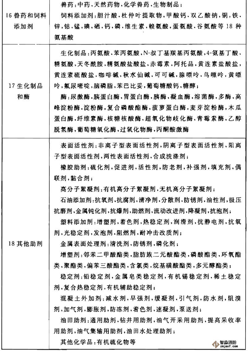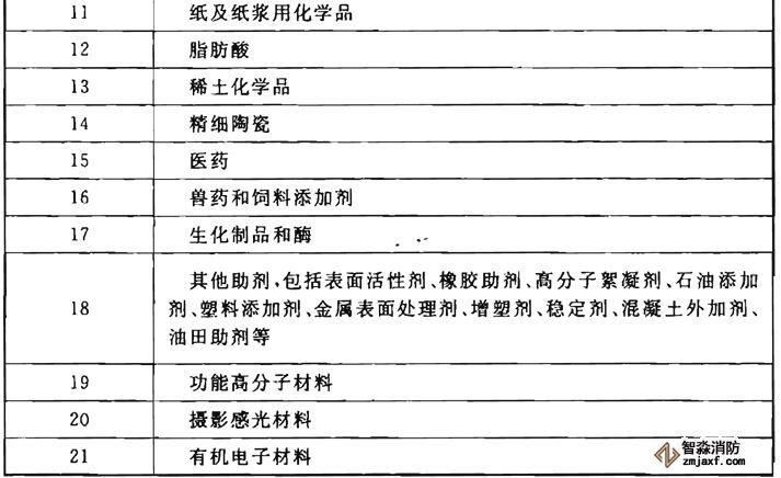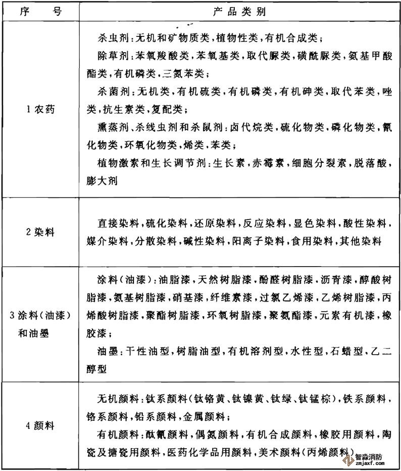表1是在上海市工程建設(shè)規(guī)范《精細(xì)化工企業(yè)設(shè)計防火規(guī)范》DGJ 08的基礎(chǔ)上,參照日本1990年精細(xì)化工產(chǎn)品分類,并結(jié)合我國精細(xì)化工產(chǎn)品品種的發(fā)展制定的。
