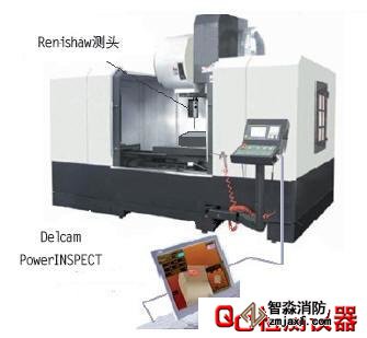 傳統(tǒng)的零件測量方法常常采用離線測量。需把被測零件從加工設(shè)備轉(zhuǎn)移到測量設(shè)備上,有時(shí)在一個(gè)加工過程中甚至需要幾個(gè)來回,使檢測工件的費(fèi)用,超過了工件的加工費(fèi)用。因此通過使用在線測量來代替離線測量,使得在線檢測的效率和精確度得到保證的條件下,使質(zhì)量檢測過程更靠近加工過程,從而保證了工件從加工設(shè)備上卸下的時(shí)候就是合格品。本文介紹的基于Renishaw和Delcam的加工中心在線檢測是通過為加工中心配備一個(gè)Renishaw測頭以及PowerINSPECT在線檢測軟件,構(gòu)成加工中心在線檢測系統(tǒng),如圖1所示。
